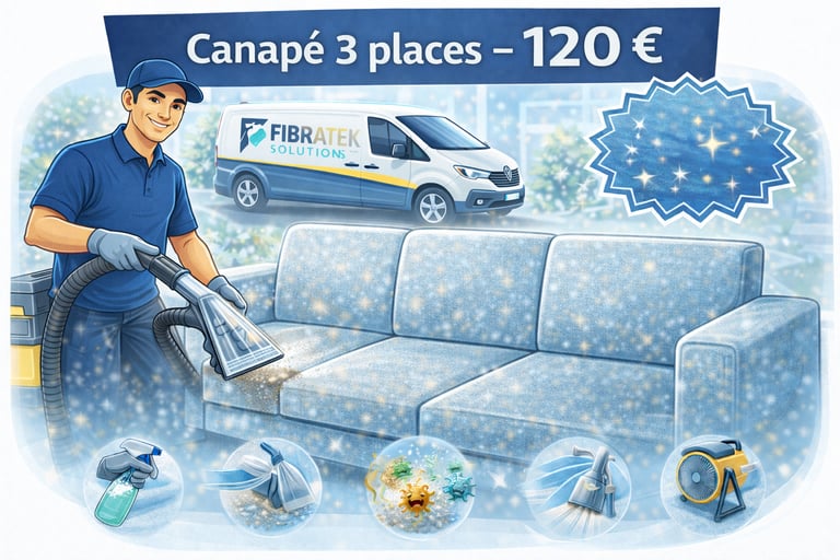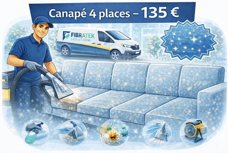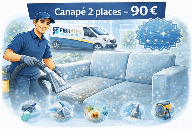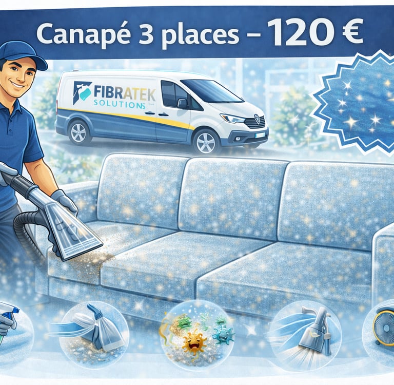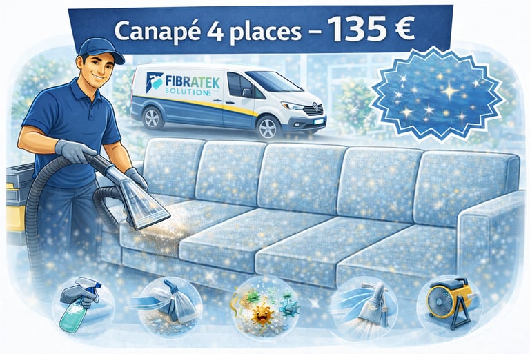 Chez Fibratek Solutions, nous proposons un nettoyage textile professionnel, efficace, sécurisé et adapté à tous les types de tissus (microfibres, velours, coton, polyester, simili cuir…).