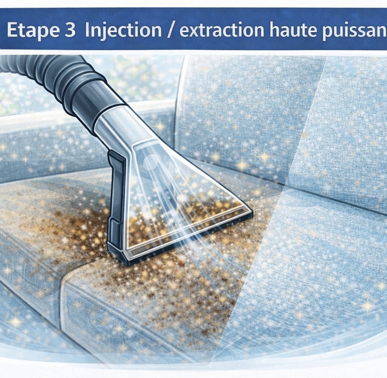 Notre machine projette l’eau + produit nettoyant dans les fibres, puis aspire instantanément la saleté.