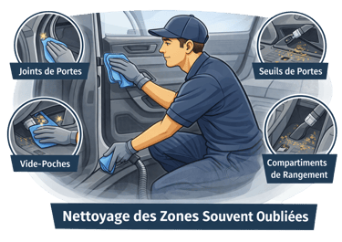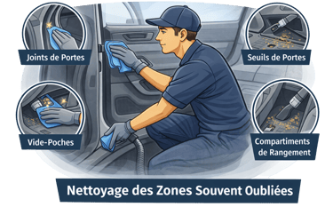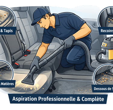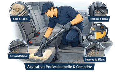 Aspiration approfondie (recoins, rails de sièges, zones difficiles d’accès)