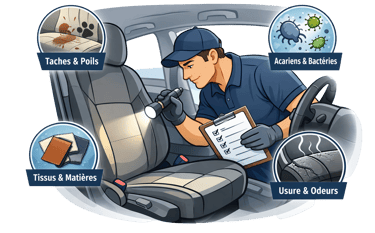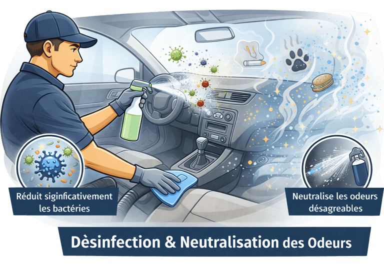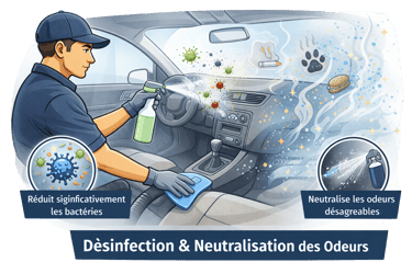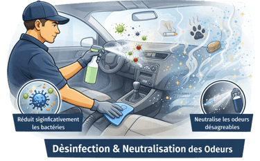 Votre véhicule est utilisé quotidiennement et accumule au fil du temps poussières, bactéries, poils d’animaux, taches incrustées et mauvaises odeurs. Un simple passage d’aspirateur ne suffit pas à nettoyer en profondeur ni à assainir durablement l’habitacle.