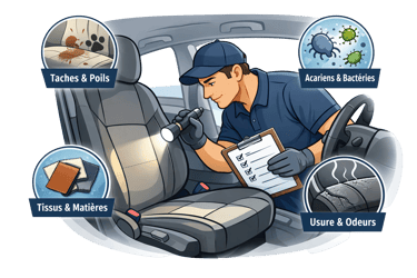 Avant toute intervention, nous réalisons un contrôle visuel complet de l’intérieur du véhicule :