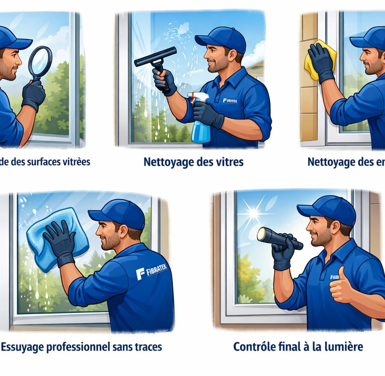 ✔ Nettoyage des vitres (intérieur / extérieur selon demande)